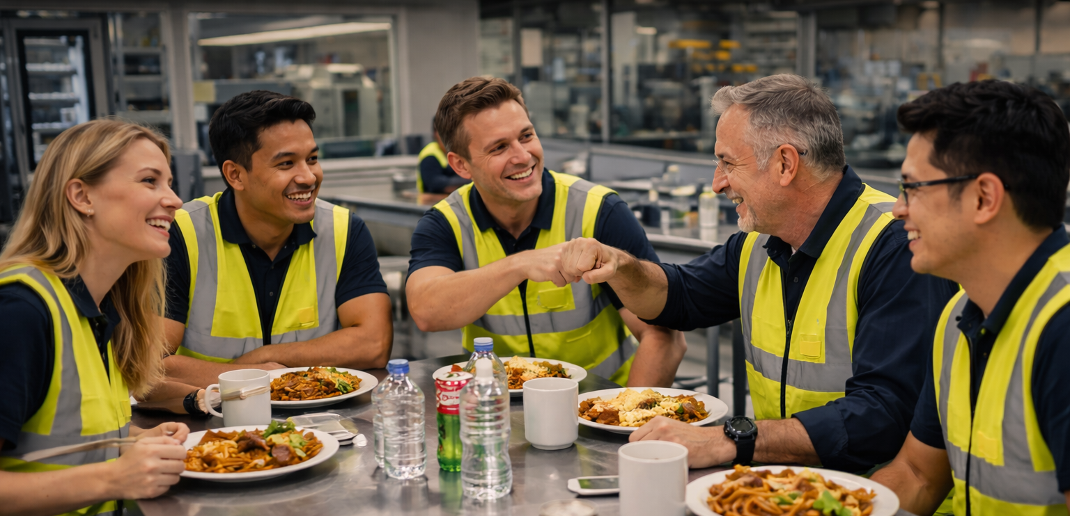 Every team member receives free lunch and dinner each working day, ensuring our staff are looked after during long and demanding workdays.