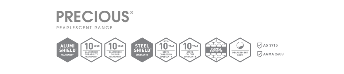The Precious pearlescent range is a collection of beautiful, decorative pearlescent colours, delivered with warranty grade* advanced durable polyester thermosetting powder.