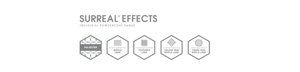 The Surreal Effects range is a collection of functional and decorative textures and ripple effect finishes, designed to conceal surface imperfections, delivered with tough polyester thermosetting powder.